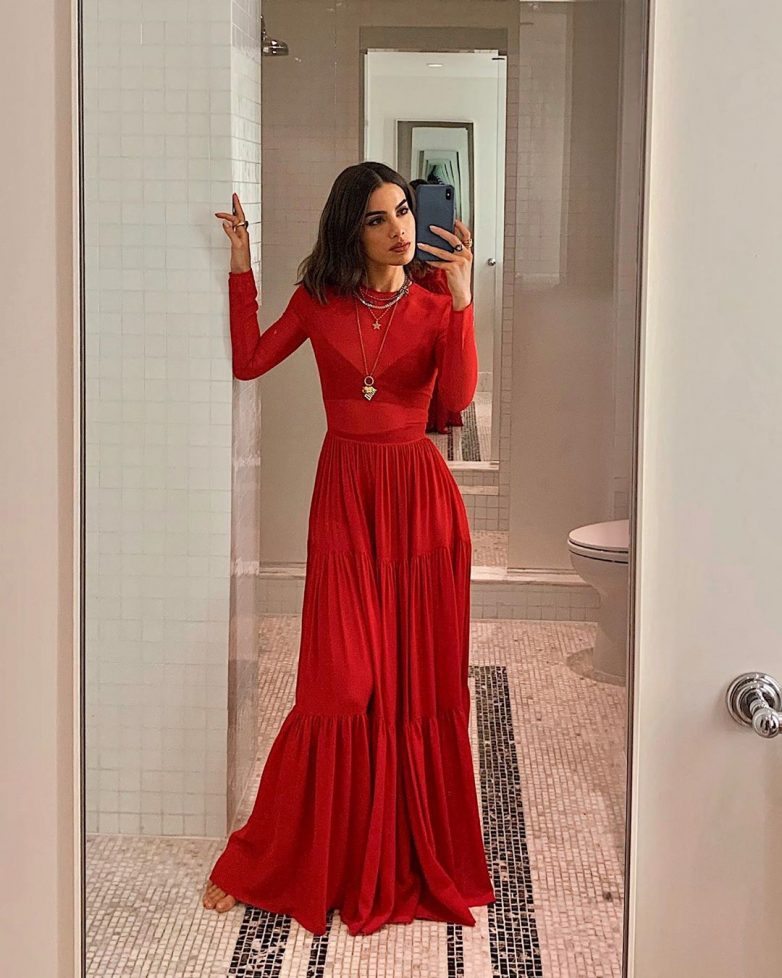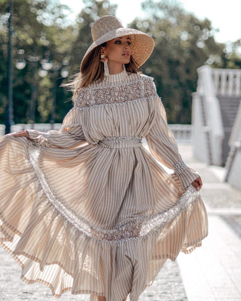 Летнее платье в пол с рукавами – отличный выбор для девушки-загадки. Струящиеся легкие ткани показывают окружающим лишь общие очертания фигуры, давая им почву для размышлений и догадок.