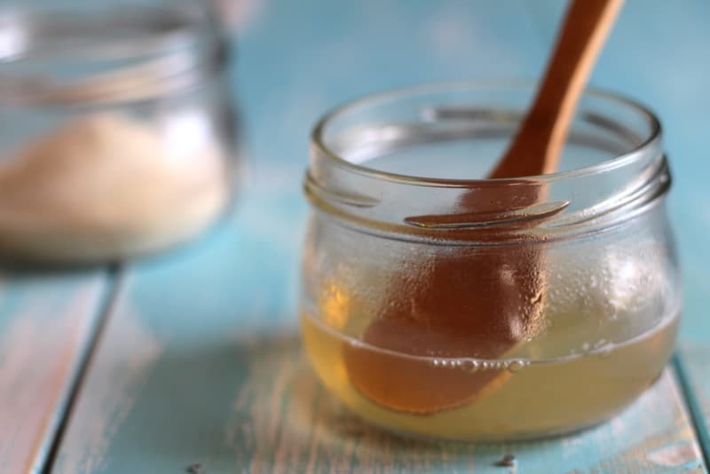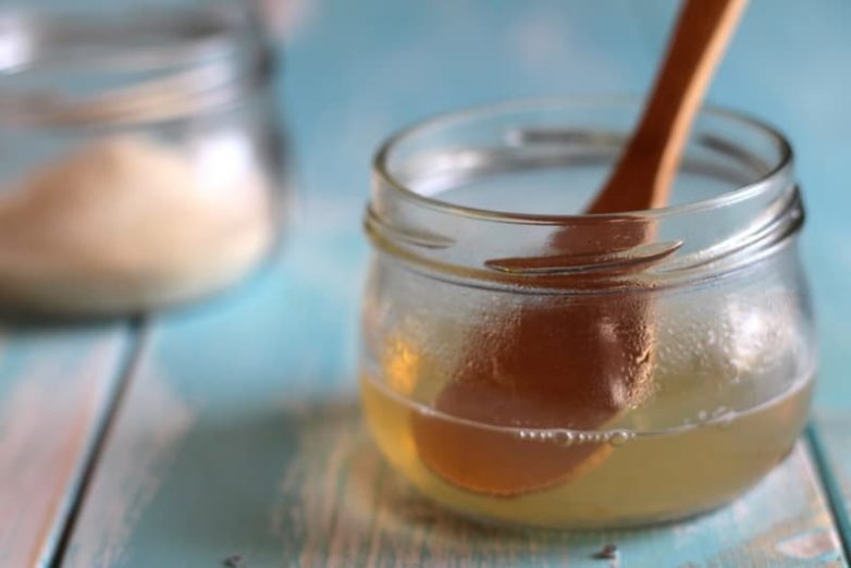 Разведите желатин в молоке, дайте настояться 15-20 минут, затем нагрейте на водяной бане. Следите за тем, чтобы он не закипел. Когда он полностью растворится, дайте ему немного остыть, затем добавьте мед и несколько капель масла. Как следует размешайте. Маска готова.