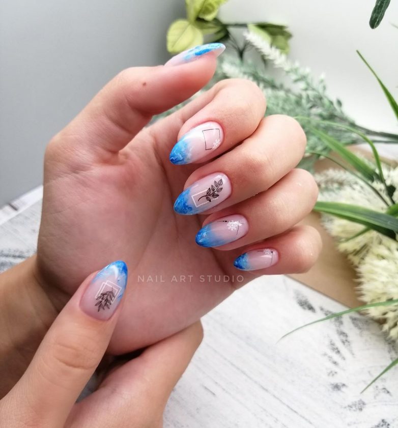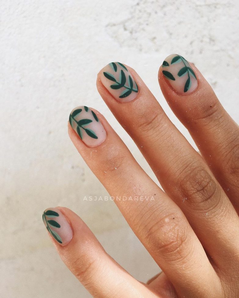 Яркие цветы уходят на второй план, а простые листики и веточки становятся главными акцентами в осеннем маникюре. Если хочется сделать маникюр быстро, тогда можно использовать стемпинг или слайдеры. Отлично смотрится этот дизайн в стиле негативного пространства.