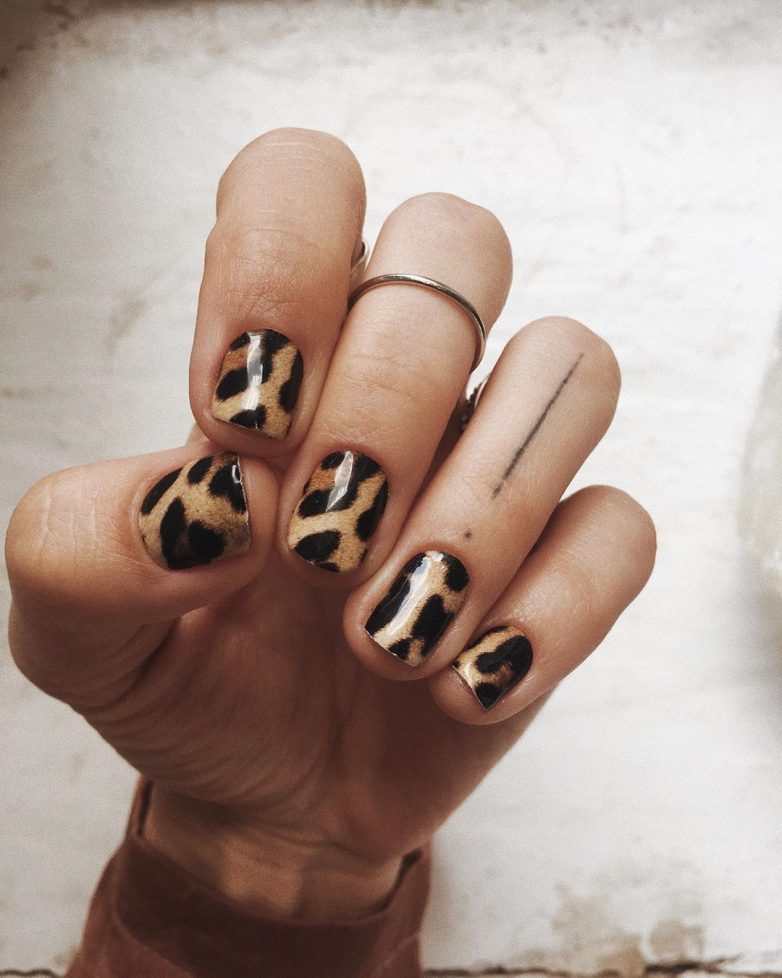 Анималистический принт до сих пор в моде, а осенью дамам стоит сделать маникюр с шикарным леопардом. Не нужно выделять этим рисунком все ногти, достаточно подчеркнуть только один или два ногтя, а остальные пальчики украсить приглушенным матовым или глянцевым лаком.