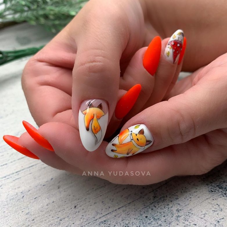Маникюр с лисой – яркий и поднимающий настроение дизайн