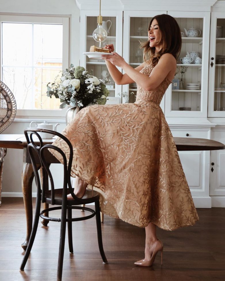 Рукоделие в образе — это создание различных элементов одежды или декора своими руками. Самый популярный прием — вышивка или наклейка, имитирующая ее. В таком платье женщина будет чувствовать свою индивидуальность, что придает образу изюминку.