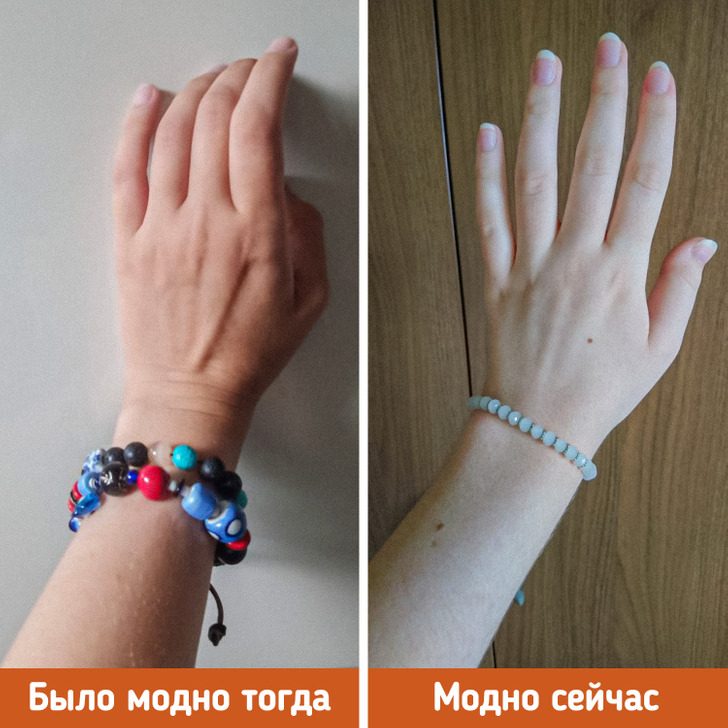 Такие браслеты еще называются чакровыми. В 2022 году они, кстати, вернулись в моду. Но без главной фишки 1990-х и 2000-х — надевать как можно больше браслетов. Также сейчас в тренде более утонченное украшение с мелкими бусинами.