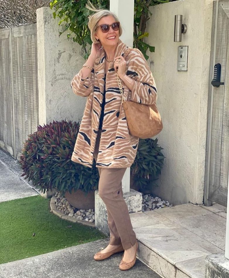 После 50 лет специалисты советуют женщинам добавлять в свой образ побольше яркости. Эта хитрость поможет вам выглядеть свежее и даже моложе. Выбирайте для своего образа принтованные модели блузок и рубашек, яркие аксессуары и ни в коем случае не черную обувь.