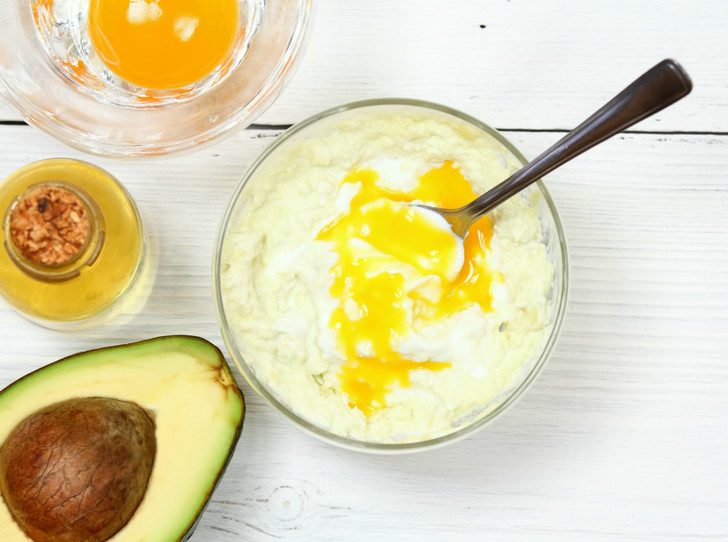 Смешайте две чашки (480 мл.) цельного или кокосового молока с одним яйцом в большой миске так, чтобы желток полностью растворился в жидкости. Затем опустите в нее волосы и держите на протяжении 7-10 минут. После этого, не выжимая волосы, закрепите волосы в пучок и наденьте шапочку для душа. Оставьте маску впитываться на следующие полчаса. Затем снимите шапочку и промойте волосы прохладной водой.