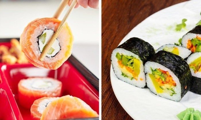 Минимальное количество калорий и легкий вкус сделали японское блюдо любимым среди современных девушек. На деле экзотическая закуска содержит большое количество белого крахмалистого риса, который «поставляет» в организм глюкозу. Некоторые рецепты содержат калорийные добавки, обжариваются в темпуре, что добавляет вредных веществ. Выбирайте роллы с овощами, нежирными сортами рыбы, не налегайте на соевый соус, чтобы впоследствии не бороться с целлюлитом.