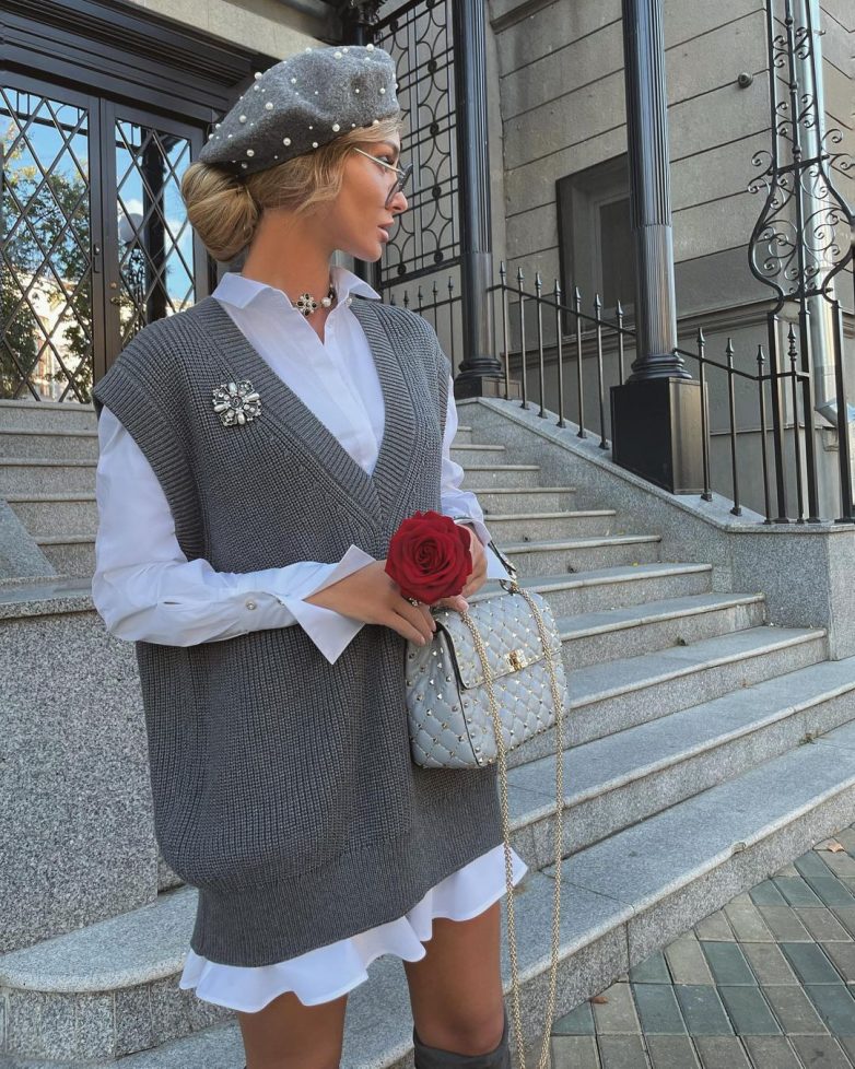 Классический тандем из рубашки и юбки тоже может быть очень ярким и стильным. Осенью вы вполне можете выбрать кокетливую длину мини и скомбинировать такую юбку с рубашкой в классическом приталенном фасоне. Чтобы точно было тепло, накиньте сверху пальто, только не в привычном однотонном виде, а в интересном принте, например, клетка.