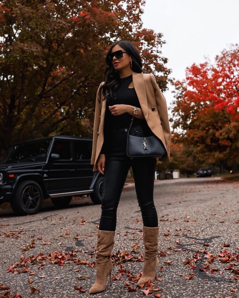 В принципе любая осенняя вещь отлично смотрится с пиджаком или жакетом. Любимые джинсы, брюки всех моделей, юбки и платья будут отлично гармонировать с классической деталью. Стилисты еще советуют к такому образу выбирать высокие сапоги, которые сделают образ выше и стройнее. Стоит отметить, что пиджак необязательно должен повторять цвет остального аутфита, он может выступать главной яркой деталью в имидже модной леди.