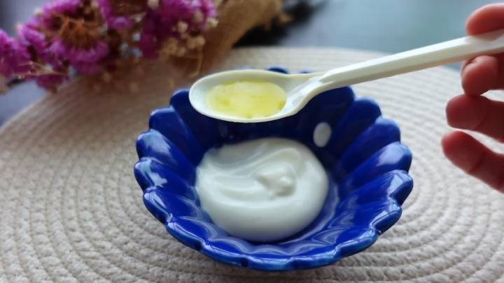 В миску добавьте 1 ст. л. жирной сметаны и столько же оливкового масла (можно заменить на любое другое косметическое масло, которое у вас есть). Молочные белки убирают пигментацию, масло питает и наполняет кожу. Затем добавить 5 капель глицерина из аптеки. Оно помогает удерживать влагу в коже.