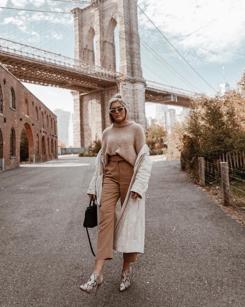 Казалось бы, широкие брюки – это не совсем практичный фасон для слякотной осени. Однако, элегантные брюки палаццо завоевали любовь дам, и текущей осенью станут ведущим трендом. Стилисты рекомендуют женщинам обратить внимание на модели оттенка беж, молочного, серого и черного цвета.