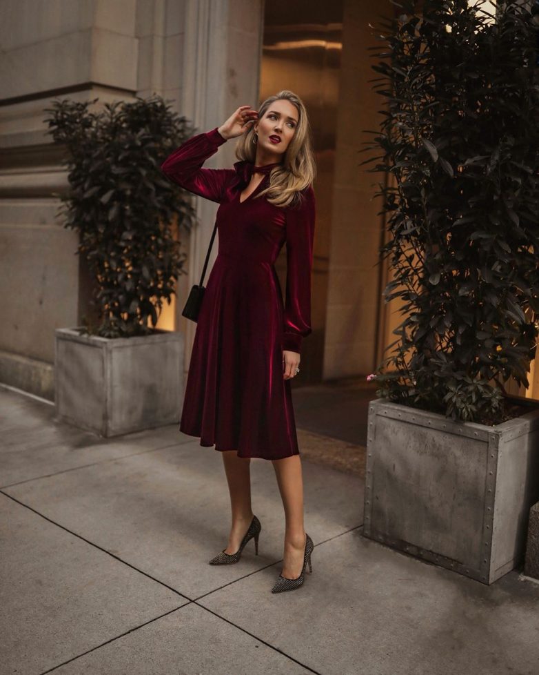 Трикотажные, вязаные, бархатные и из костюмной ткани платья пользуется спором в осенний сезон. Чтобы женщине было не только тепло, но и выглядела она самой жгучей красоткой, стоит выбрать наряд в бордовом цвете. Платья подходят как для свидания, так и для офиса.