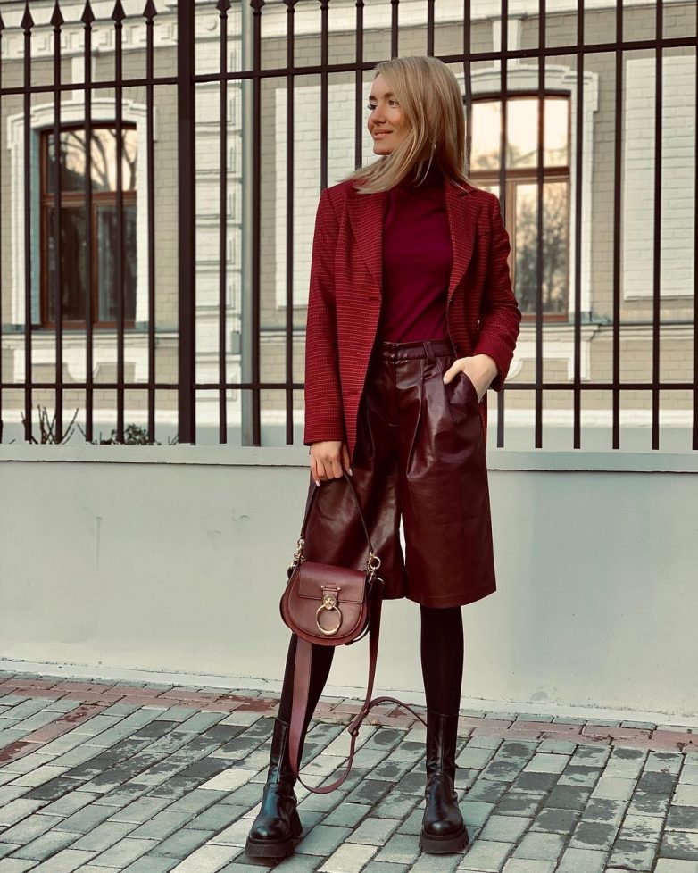 Бордовый цвет в образах позволяет показать всю чуткость женской привлекательности. Роковые ансамбли отлично смотрятся в любой стилистике осени.