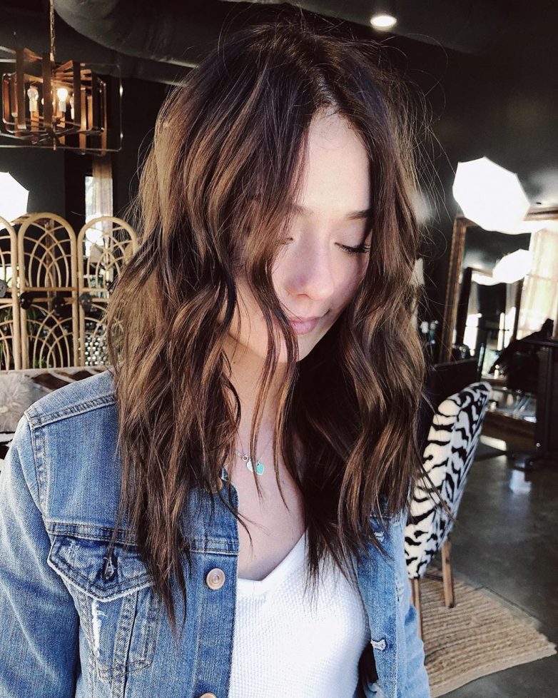 Шоколадный оттенок волос создаст образ настоящей и естественной брюнетки. Благодаря такому насыщенному цвету женщина освежит свой образ и сделает кожу на тон светлее, причем это касается любого цветотипа женщины.