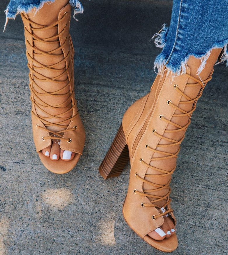 Открытые ботильоны на шнуровке