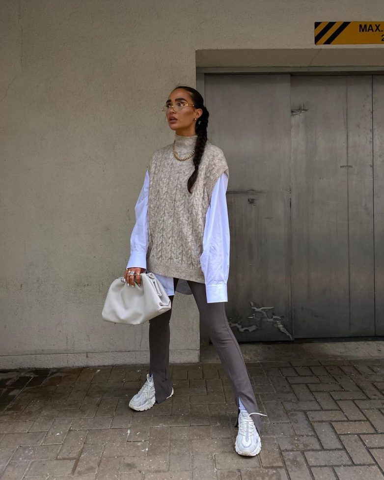 Как стильно носить вязаный свитер без рукавов