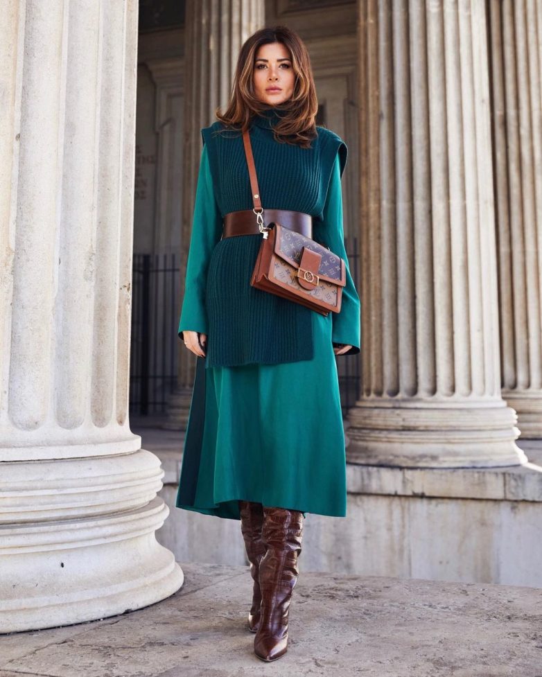 Силуэт мгновенно становится стройнее, если вы надеваете обувь на высоком каблуке. Ваш рост увеличивается на несколько сантиметров, а юбка миди усилит эффект вытягивания силуэта. Таким образом вы будете выглядеть намного выигрышнее.