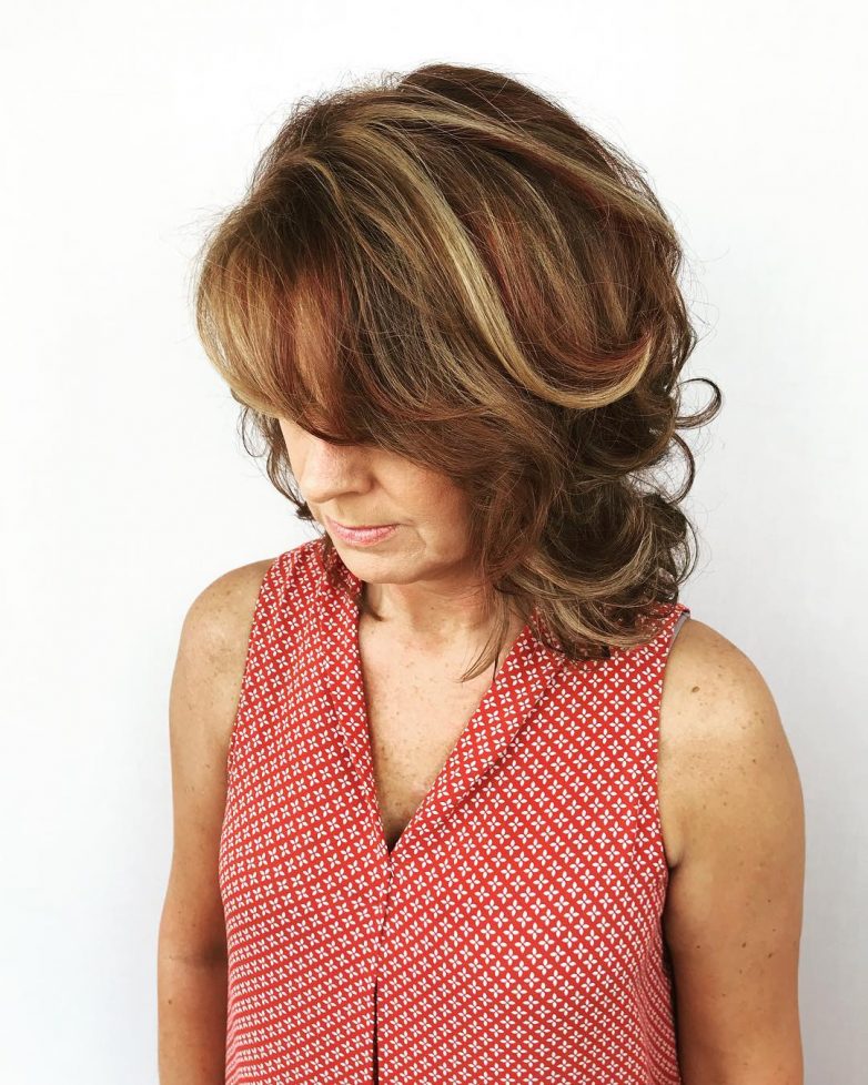 Темноволосым дамам после 60 в зимнем сезоне 2023 года стоит попробовать добавить в свой образ чуточку интриги. Сделать это можно при помощи окрашивания с карамельными бликами, которые добавит густоты вашим волосам.