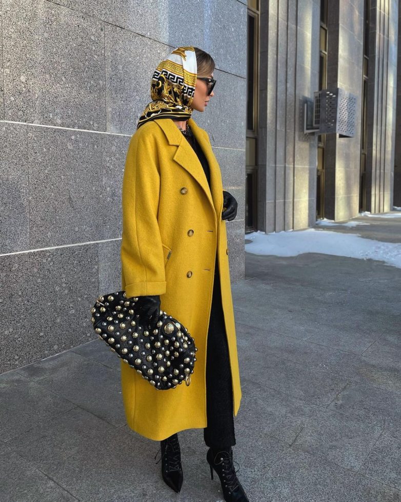 К длинному пальто часто выбирают не слишком броские аксессуары, при этом они отличаются изысканностью и качеством. К примеру, простая вязаная сумочка или модель из ткани здесь смотреться не будет. Также вы можете выбрать сумочку в ярком цвете, чтобы сделать красочный акцент в образе.