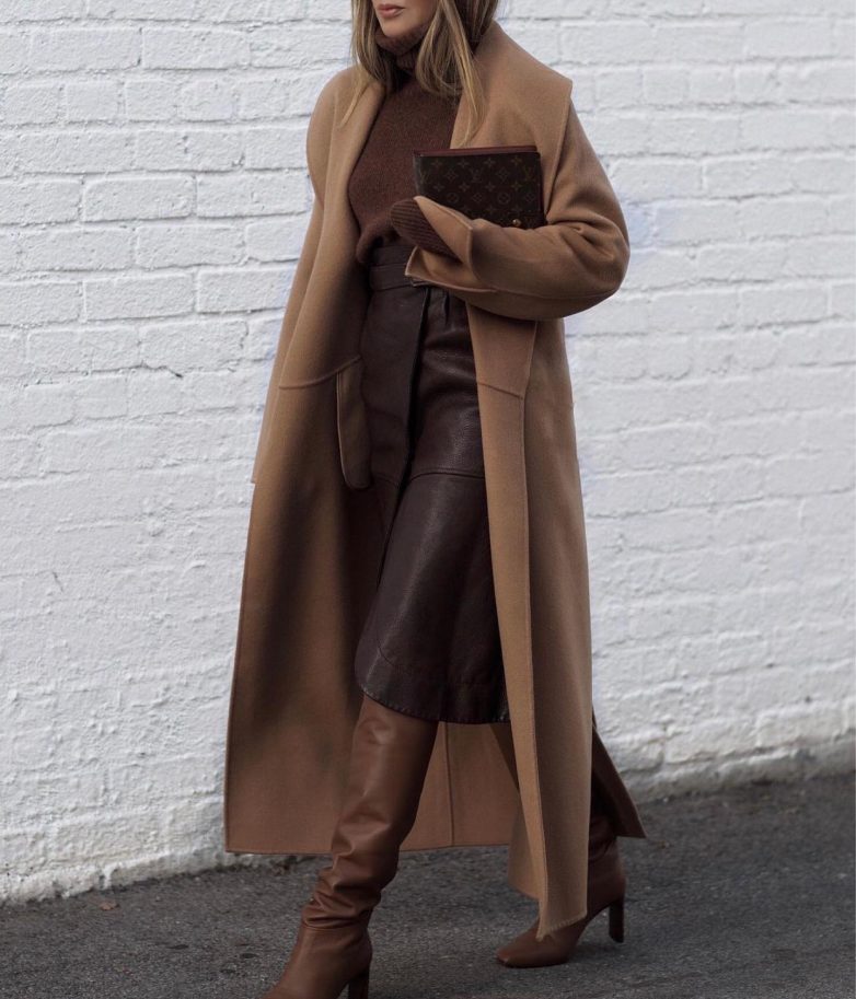 Длинное пальто + высокие сапоги