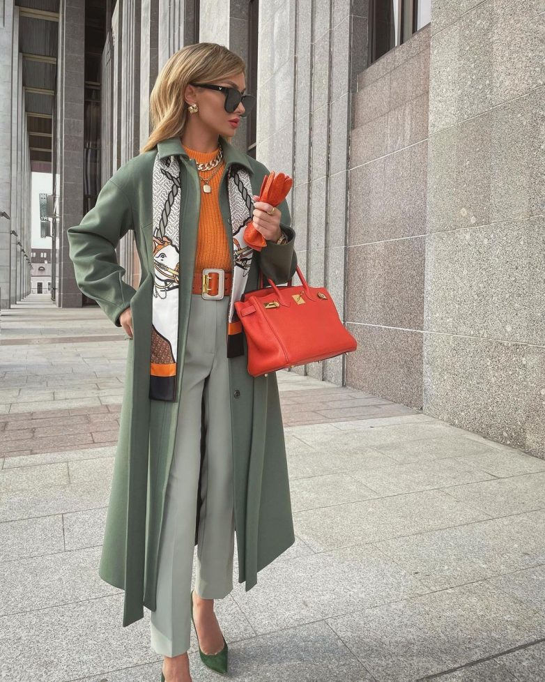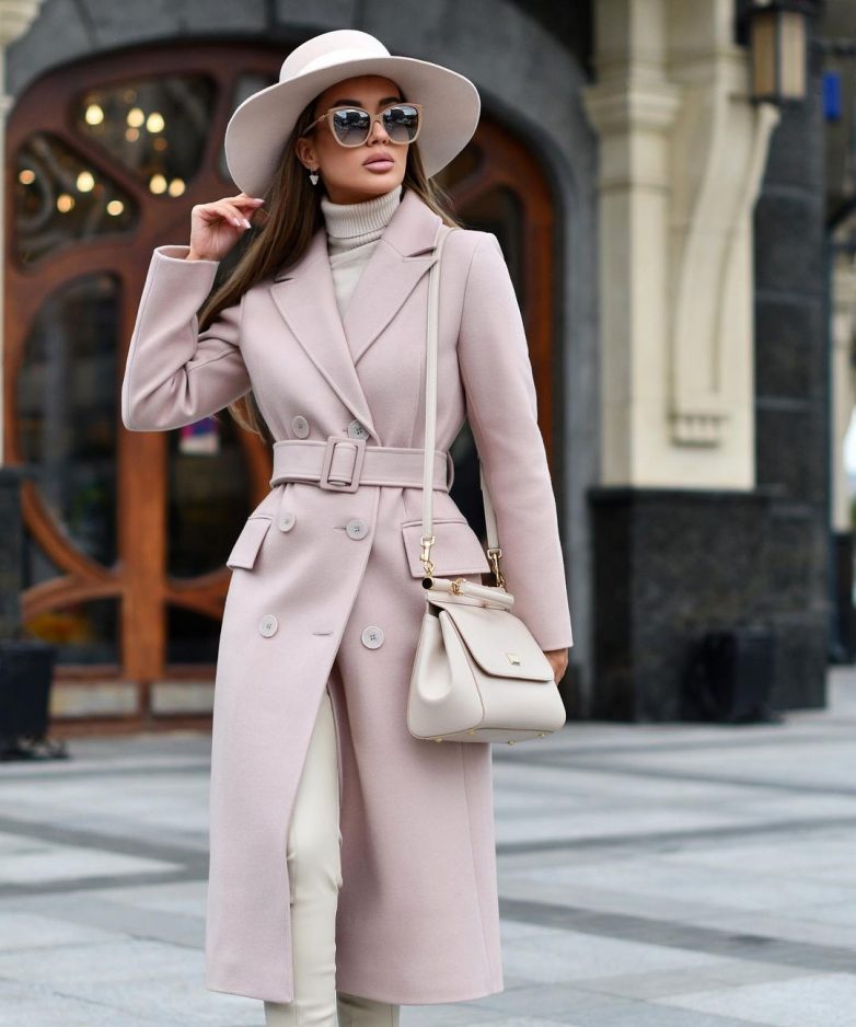 Женственный и стильный образ – это классическое пальто и юбка. Особенность сета в том, что вы праве выбирать любую юбку, но при этом должны соблюдать правило. Желательно подбирать фасон юбки точно такой же, как и пальто. Например, карандаш и прямое пальто или юбка-солнце и пальто с А-силуэтом. Также важно, чтобы длина пальто была такой же, что и юбка, но ни в коем случае не короче.