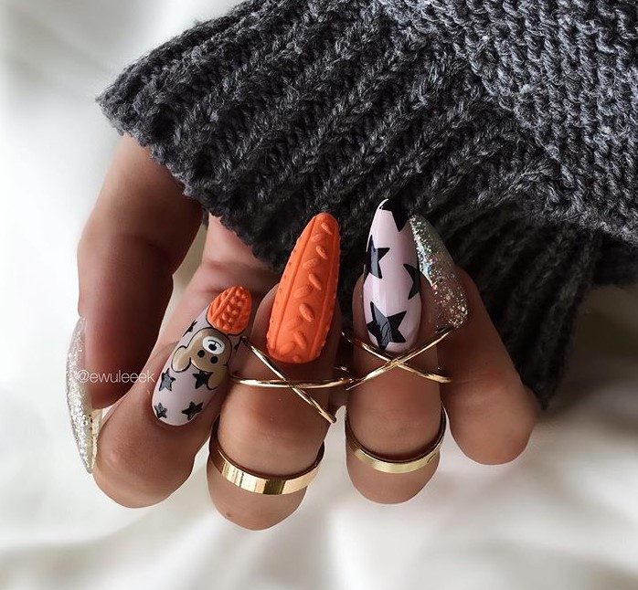 Блистайте в прямом смысле, воплотив в реальность следующий креативный дизайн. Переливающиеся звездочки передают всю атмосферу праздника.