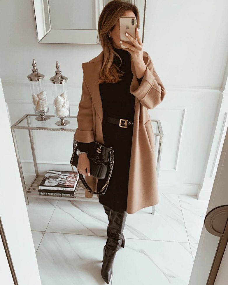 Стильное пальто черного цвета завершит идеальный зимний образ.