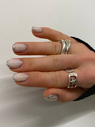 Еще один тренд, который пришел к нам в начале этого года из TikTok. Его фишка в том, что ногти выглядят прозрачными и напоминают желе. Сделать его праздничным поможет фольга «битое стекло» или растяжка блестками.