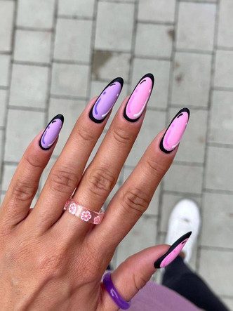 Не совсем новогодняя идея маникюра, но зато самая модная. Тренд на мультяшные ногти совсем недавно появился в TikToke и уже стал одним из самых популярных в сети. Фишка в том, чтобы сделать ногти похожими на нарисованные: черным очерчивают контур ногтя, светлым оттенком добавляют блики, а затем покрывают дизайн матовым топом.