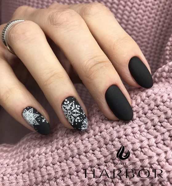 Рассмотрим, какие идеи новогоднего черного маникюра предлагают дамам мастера ногтевого дизайна.