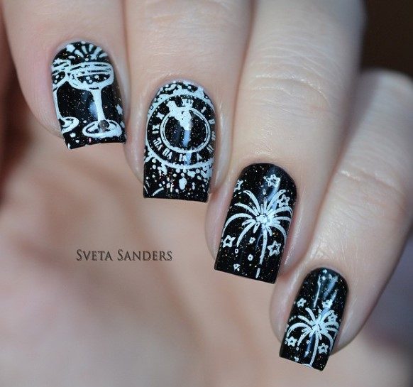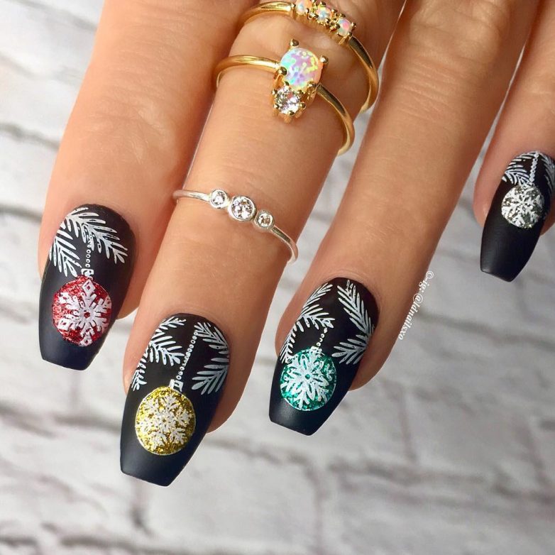 Предложенные идеи новогоднего черного маникюра позволят вам определиться с выбором и встретить Новый год во всей красе.
