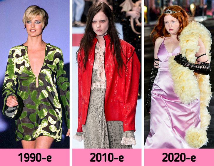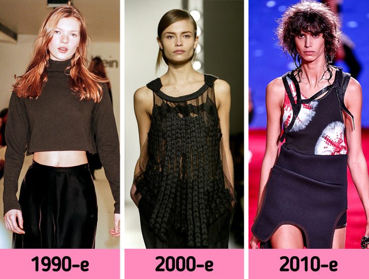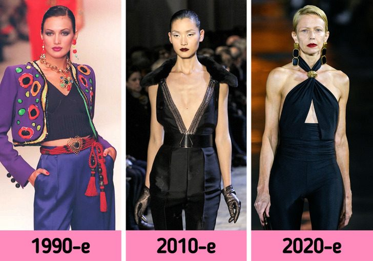Красота в модельном бизнесе в разные времена имеет свои уникальные характеристики. В 90-х дизайнеры отдавали предпочтение мягким чертам лица, стройным длинным ногам, женственным изгибам тела.