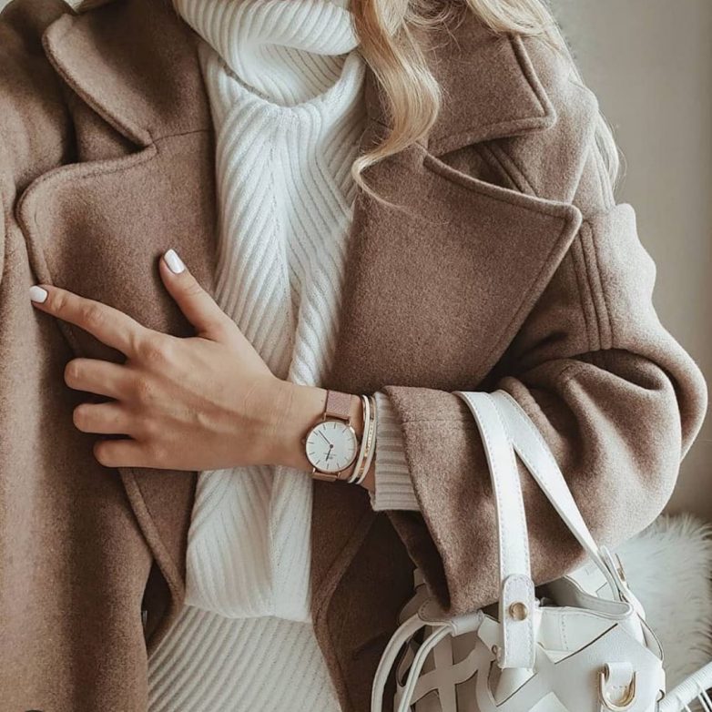 Пальто – это первая вещь, которая приходит на ум при упоминании делового стиля. Можно выбрать традиционные цвета: черный или белый, но также гармонично будет смотреть классические черные брюки с белой блузой совместно с пальто бежевого оттенка.