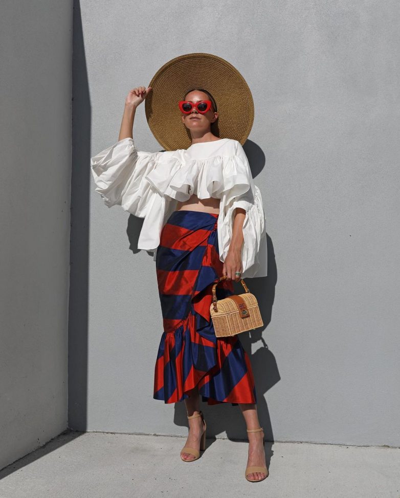 Юбка-годе позволяет собирать самые насыщенные и интересные комплекты. Если вы выбираете годе с различными оборками, воланами в цветочном принте, то для создания морского стиля можете добавить шляпку и плетеную сумку. К классическому виду юбки обычно подбирают лаконичные аксессуары и традиционные лодочки.