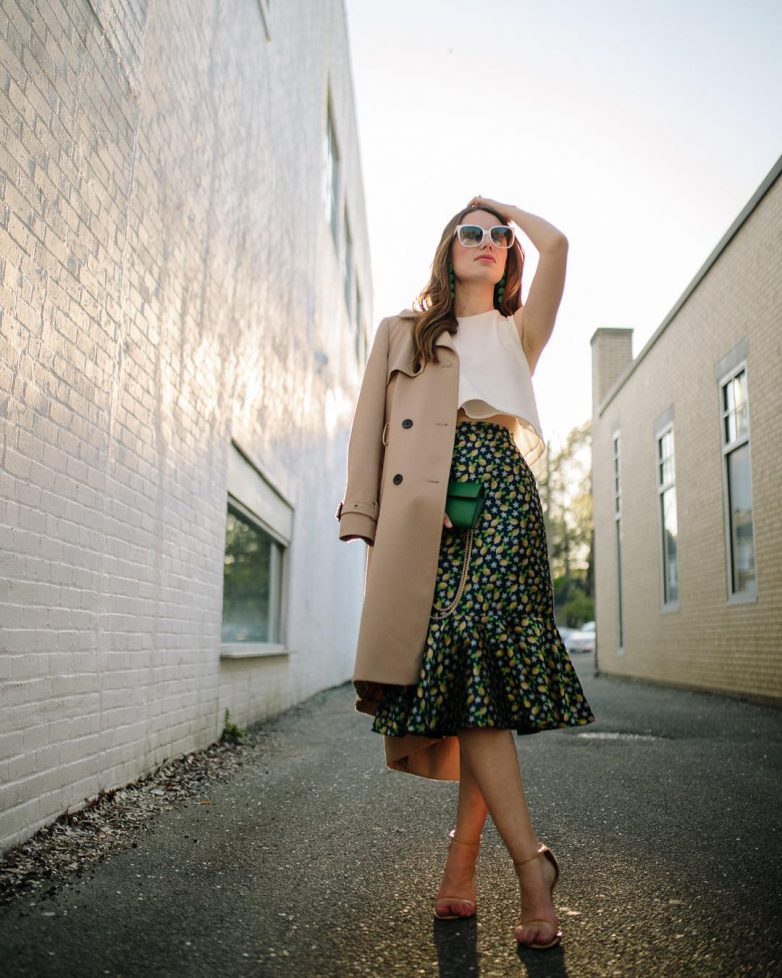 Основа для кэжуал стиля – юбка-годе и футболка. В этом образе также очень важно иметь в виду стиль юбки-годе. Слишком яркие фасоны могут совместно с футболкой выглядеть вычурно. Совет от стилистов: выбирайте классическую юбку-годе в неброских расцветках, а футболку в одном из оттенков, который присутствует в юбке.