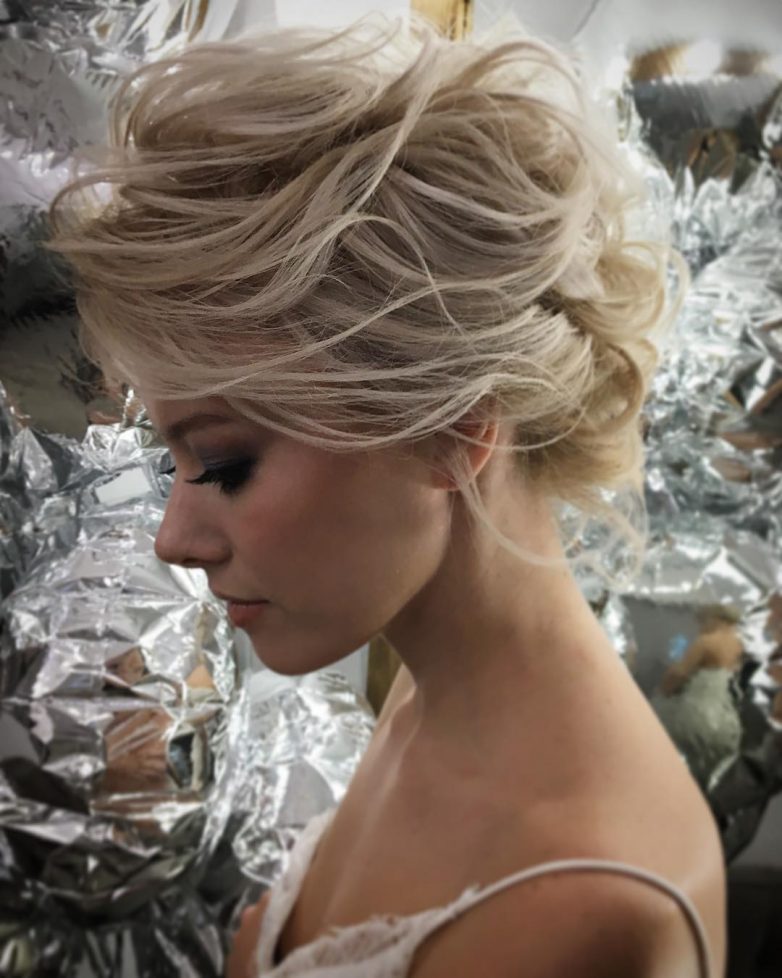 Пучок на коротких волосах сделать не так просто. Конечно, он не получится идеально ровным, но именно в его хаотичности и кроется вся красота прически. Выпущенные пряди, неухоженный пучок – это легкий и нежный образ для Нового года.
