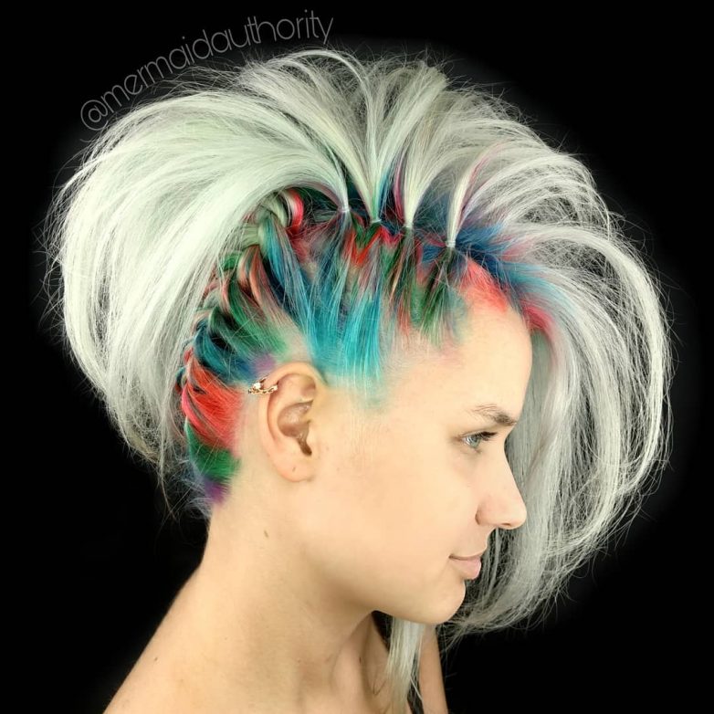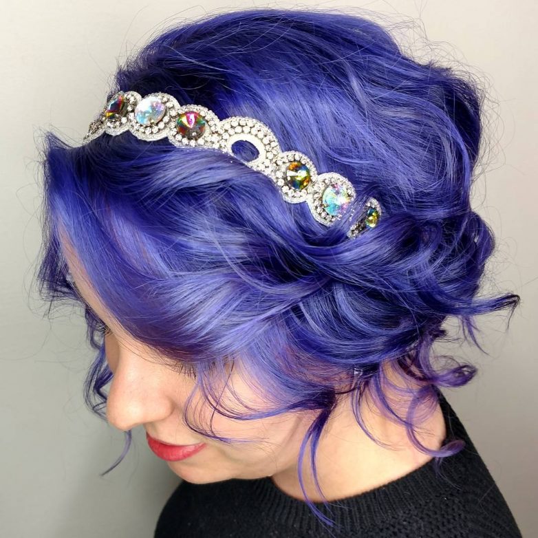 Чтобы на Новом году стать главной яркой королевой вечера, советуем предварительно сделать смелое и красочное окрашивание. Можно взять тоник, а не краску, при этом подходят все цвета радуги.