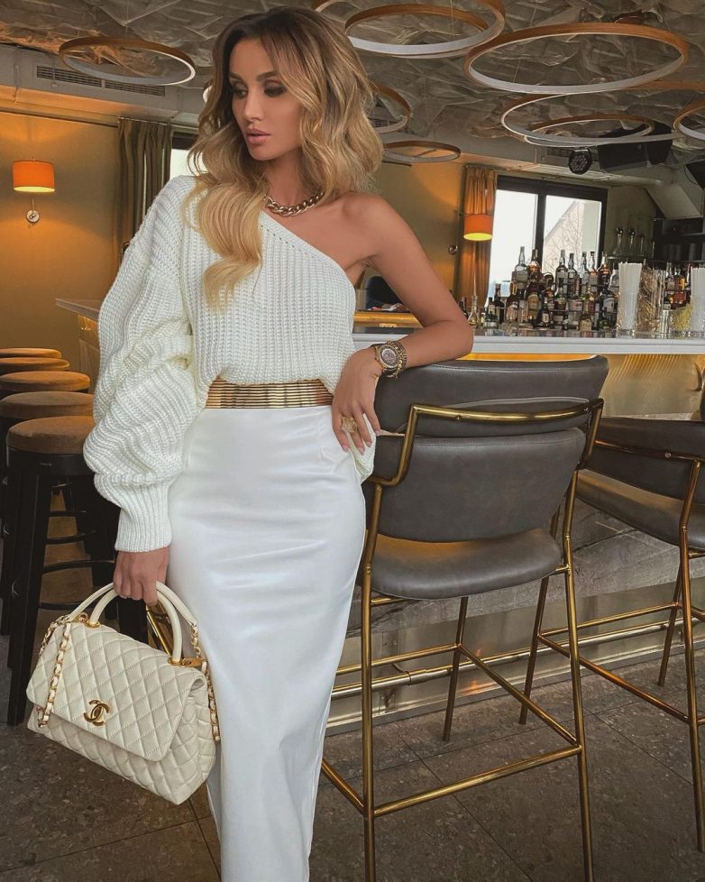 Поход в ресторан – это всегда событие, тем более на корпоратив, проводимый в нем. Здесь можно подключить фантазию для создания роскошного образа. Отлично подойдет модная юбка из шелка или платье.