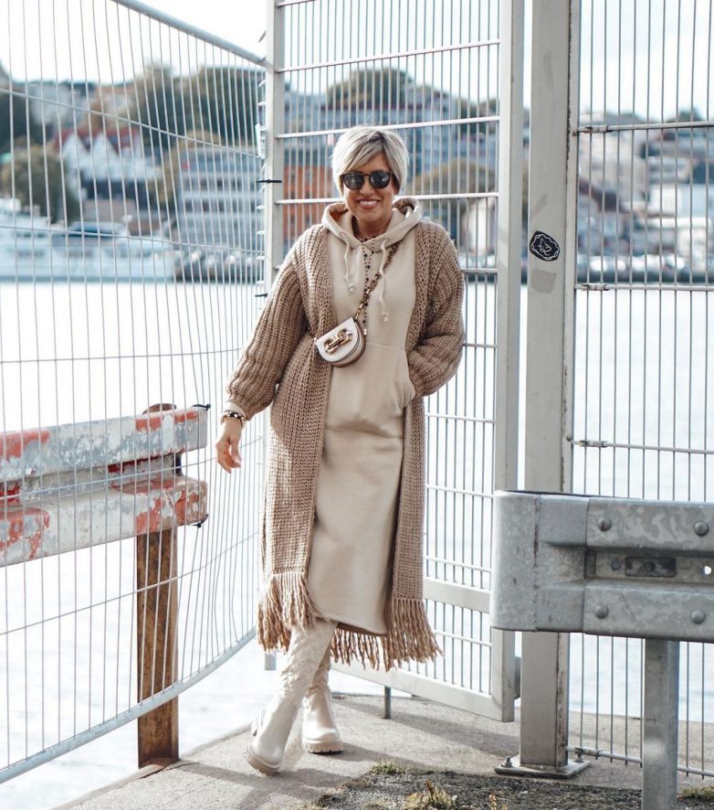 Любительницы стиля кэжуал и спорт шика часто выбирают бежевый кардиган для создания модных сетов. Стоит отметить, что спортивное платье или удлиненное худи будет отлично дополнять вязаный кардиган в классическом стиле. Такой комплект подарит вам невероятное тепло и комфорт, а женственные нотки никуда не денутся.