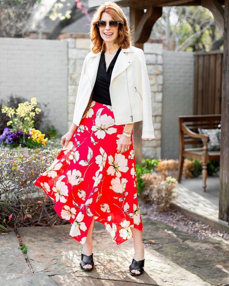 Как и с чем носить цветочный принт в 40-50 лет: юбки