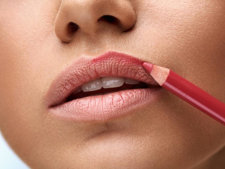 Половина успеха — подобрать жидкую подводку или карандаш с оттенком, максимально похожим на натуральный цвет ваших губ. Средство может быть чуть темнее кожи, но никак не светлее — с таким вы не сможете создать четкий контур.