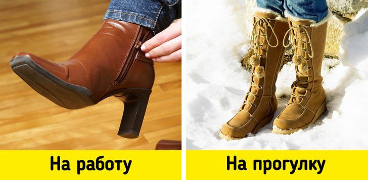 Если все-таки хочется носить ботинки, то эксперты советуют искать пару со шнурками, которая плотно облегает лодыжку. В такой обуви будет удобнее ходить по скользким и снежным дорогам.