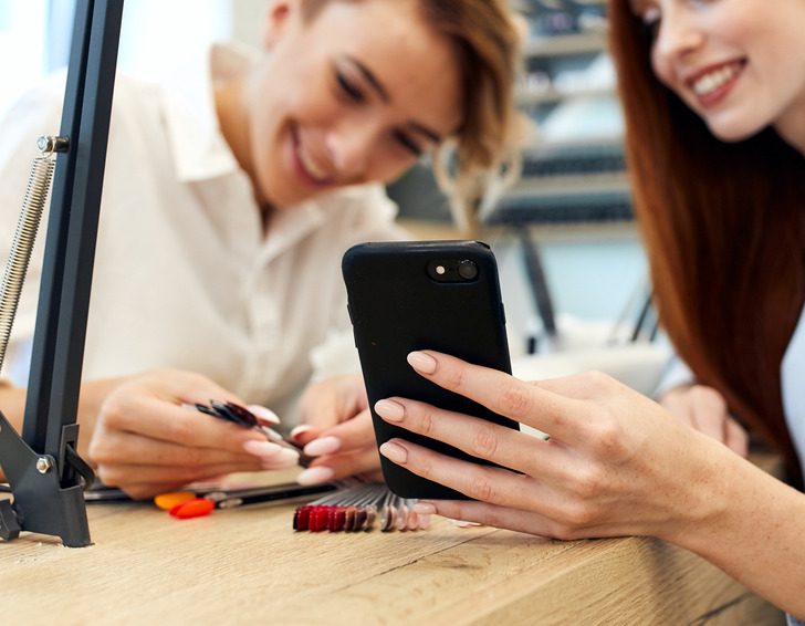 Конечно, если вам поступил срочный звонок, мастер поймет вас и войдет в положение. Но переписываться нон-стоп, листать ленту соцсетей или играть в приложение не стоит. Во-первых, свежее покрытие может повредиться. Во-вторых, мастер невольно будет отвлекаться.