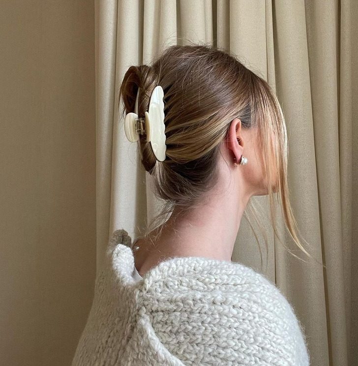 Когда-то модная заколка-краб снова в тренде. Этот аксессуар не просто мгновенно создаст прическу, но и нанесет волосам меньше вреда, чем резинки. Такая заколка выгодно подчеркнет контуры лица и станет стильным акцентом в образе.