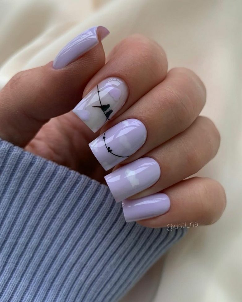 Несмотря на все новинки в нейл-арте, дамы остаются верны себе и выбирают простой однотонный маникюр. В феврале покройте ногти пастельными оттенками: голубым, нежно-желтым, розовым, пыльной розой. При желании завершить маникюр можно бархатным покрытием.