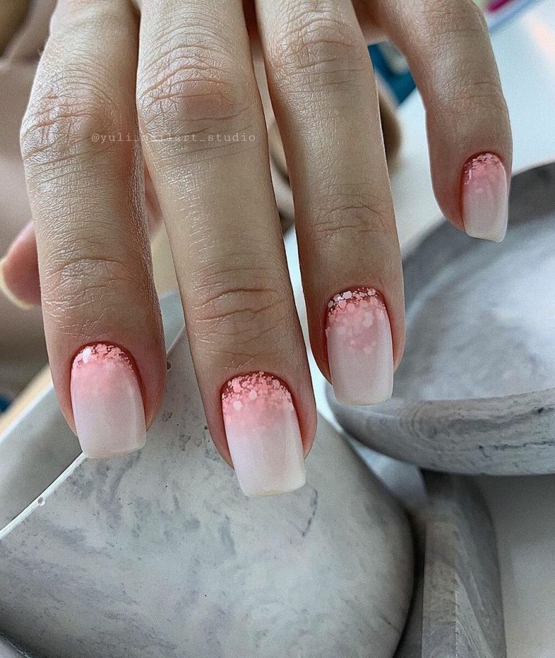 Короткие ногти квадратной формы сделают руки ухоженными. Гелевое покрытие в цвет натуральной ногтевой пластины даже стало трендом этого года.