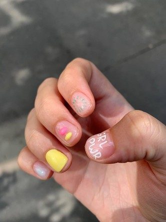 Нечеткие контуры, разводы, надписи от руки, хаотичные мазки, разный цвет ногтей — тренд на «неидеальность» продолжает поддерживаться мировыми нейл-мастерами и инфлюенсерами. Достаем остатки бунтарского духа и впускаем его в свой маникюр. Но помните, что небрежность хороша в дизайне, но не в состоянии ногтей и кутикулы: не забывайте ухаживать за кожей рук с помощью кремов и масел.
