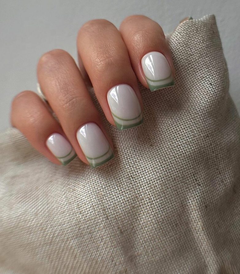 Удобная длина до 5 миллиметров позволяет без проблем работать с клавиатурой и офисной техникой. Дизайн в виде белой полосы востребован среди девушек любого возраста. Этот способ покрытия придаст свежесть рукам. Не подчеркнет возрастную кожу на кистях.