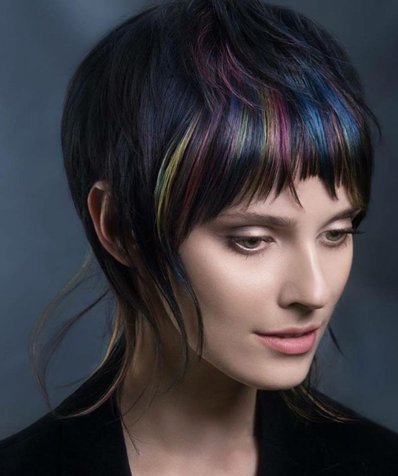 Чтобы стрижка гаврош выглядела еще более ярко и интересно, модницы выбирают необычное окрашивание. В прическе красиво смотрится окрашивания в двух цветах, где нижние и верхние пряди отличаются по оттенку. Подходит и многогранное колорирование, которое делает волосы динамичными, а стрижку гаврош шикарной.
