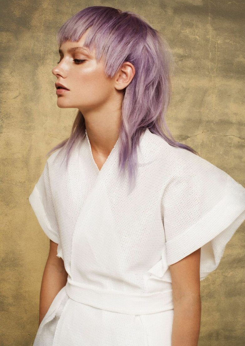 На средних волосах в стрижке используют рваную технику и максимальную филировку. Прядки со всех сторон максимально корректируют, чтобы прическа выглядела даже после мытья головы взъерошенной и пышной.