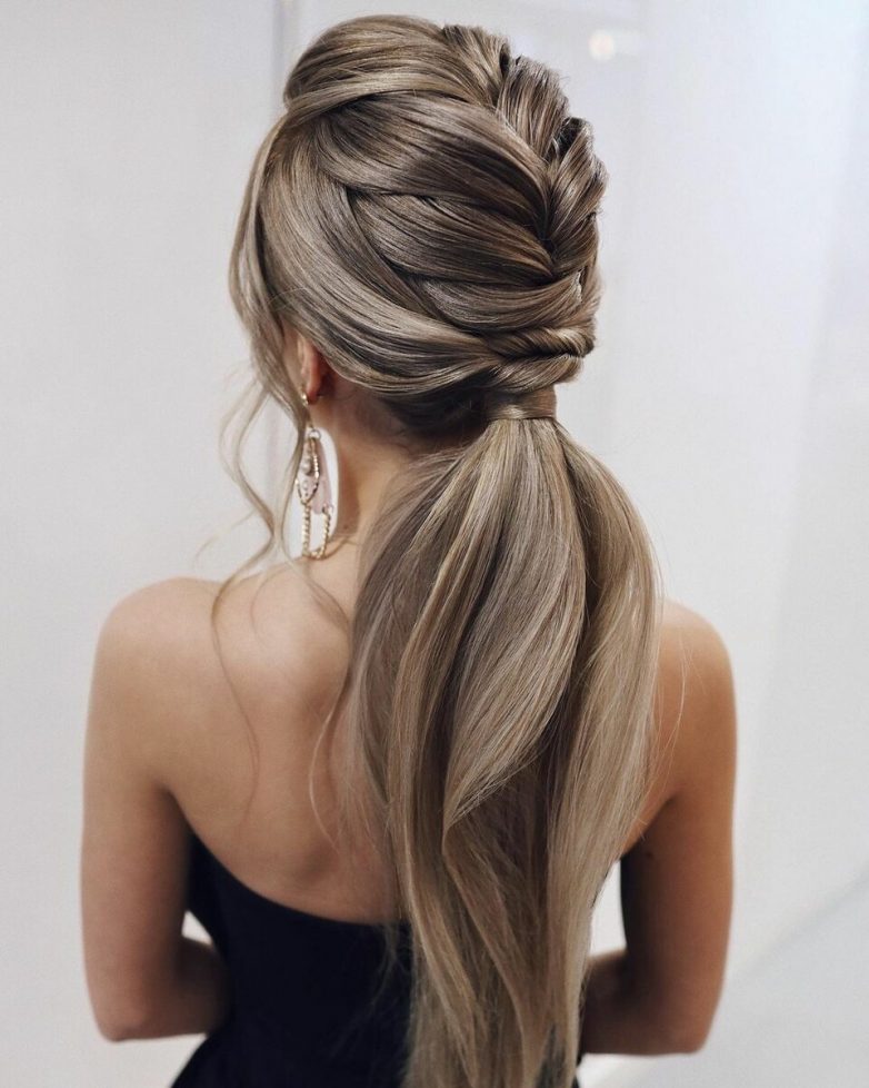 В 2023 году будут пользоваться популярностью хвосты с прямыми локонами, с волнистыми прядями, с плетением.